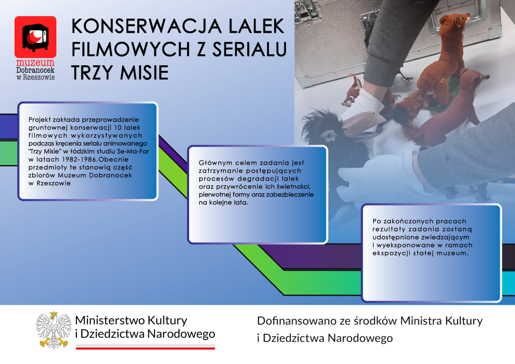 Muzeum Dobranocek ze zbiorów Wojciecha Jamy w Rzeszowie rozpoczęło realizację projektu obejmującego konserwację 10 lalek filmowych z serialu „Trzy Misie”.